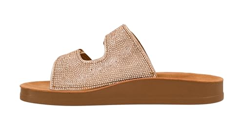 Corkys Footwear Let’s Be Real Sandals – Featuring Two Adjustable Straps, A Rhinestone Covered Upper, Easy on and Off, and Comfy Insoles For All Day Wear – Rose Gold Rhinestones